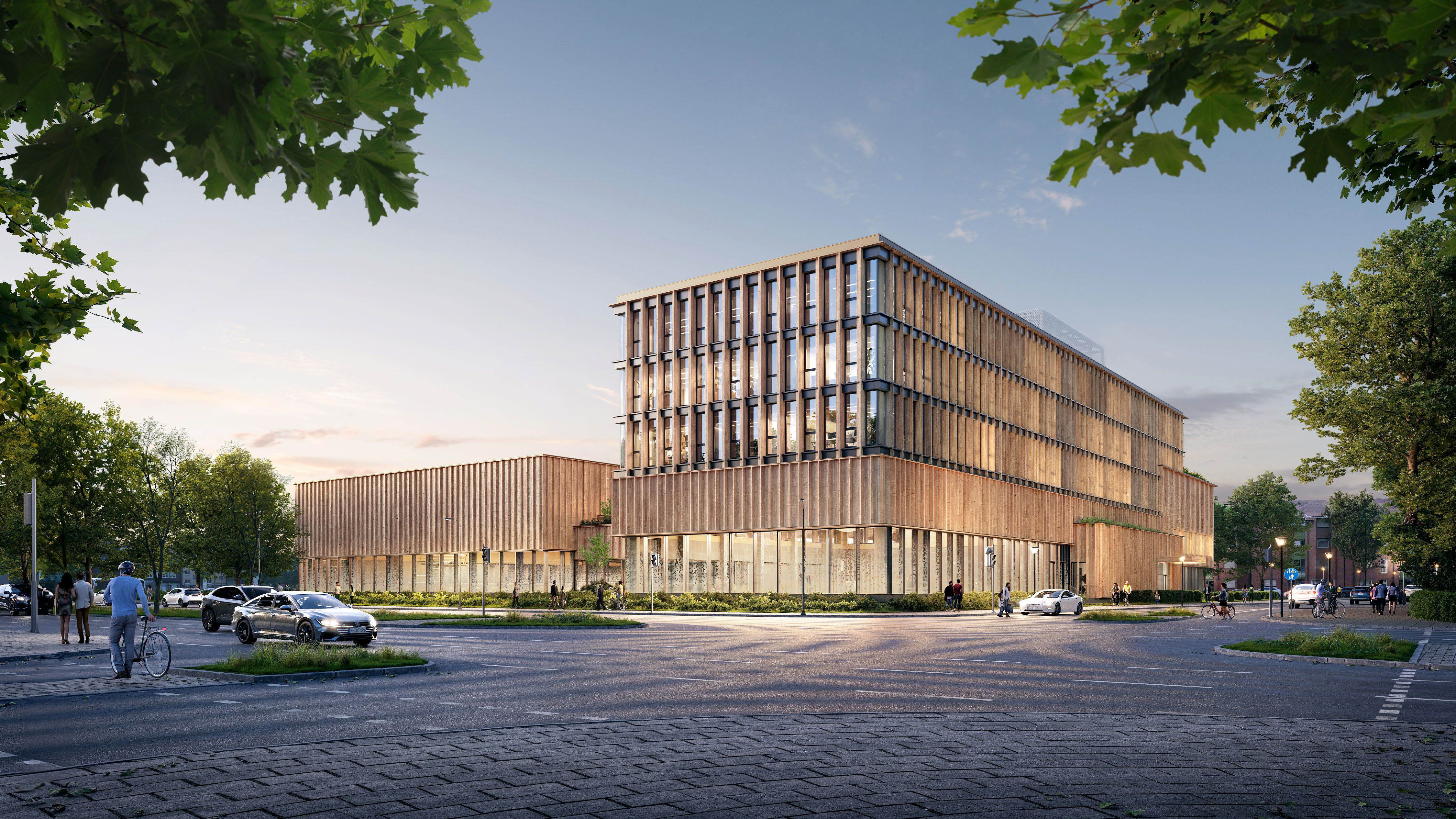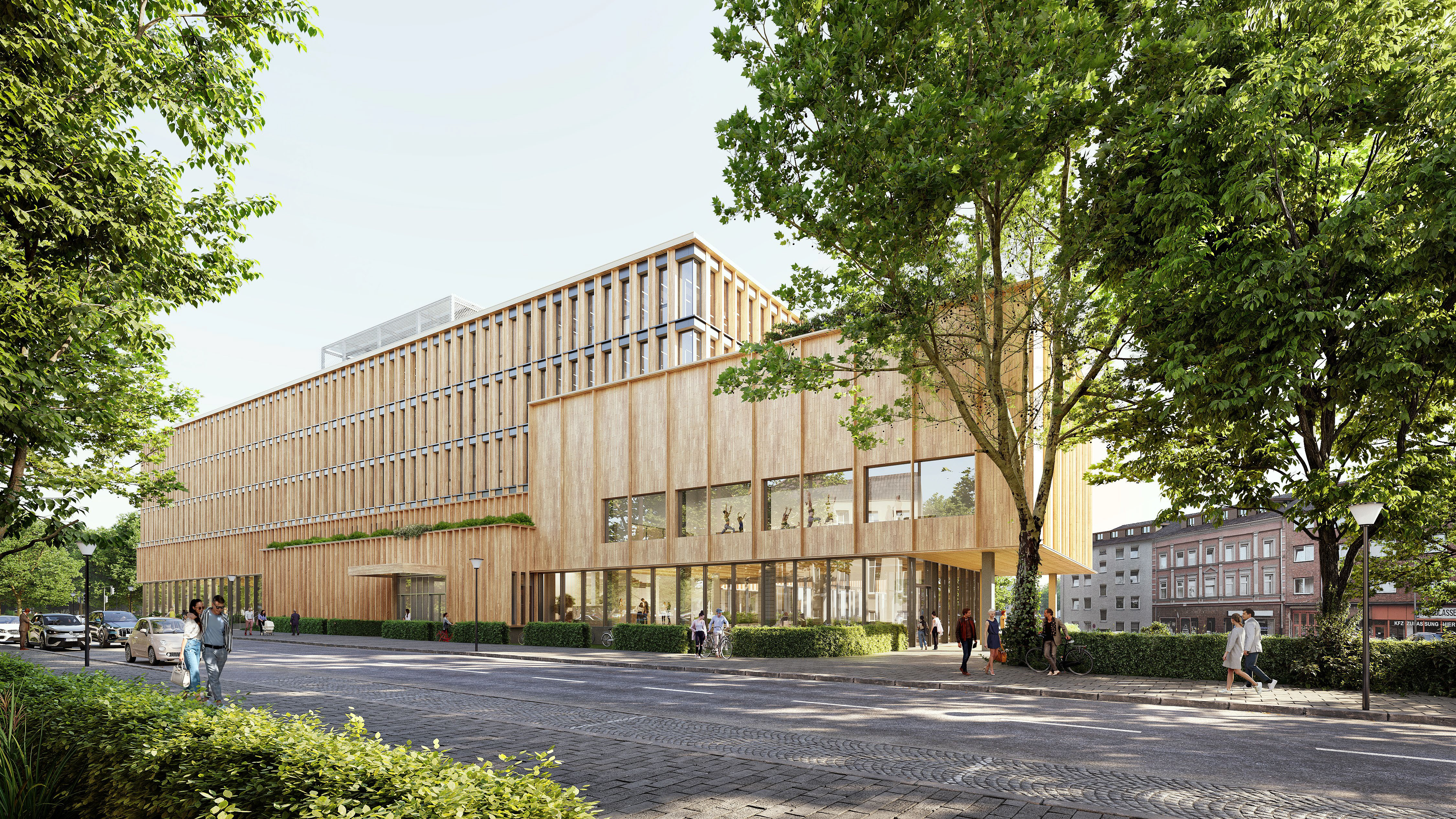 Das Vorhaben ist als hybride Konstruktion aus Stahlbeton und Holz geplant.