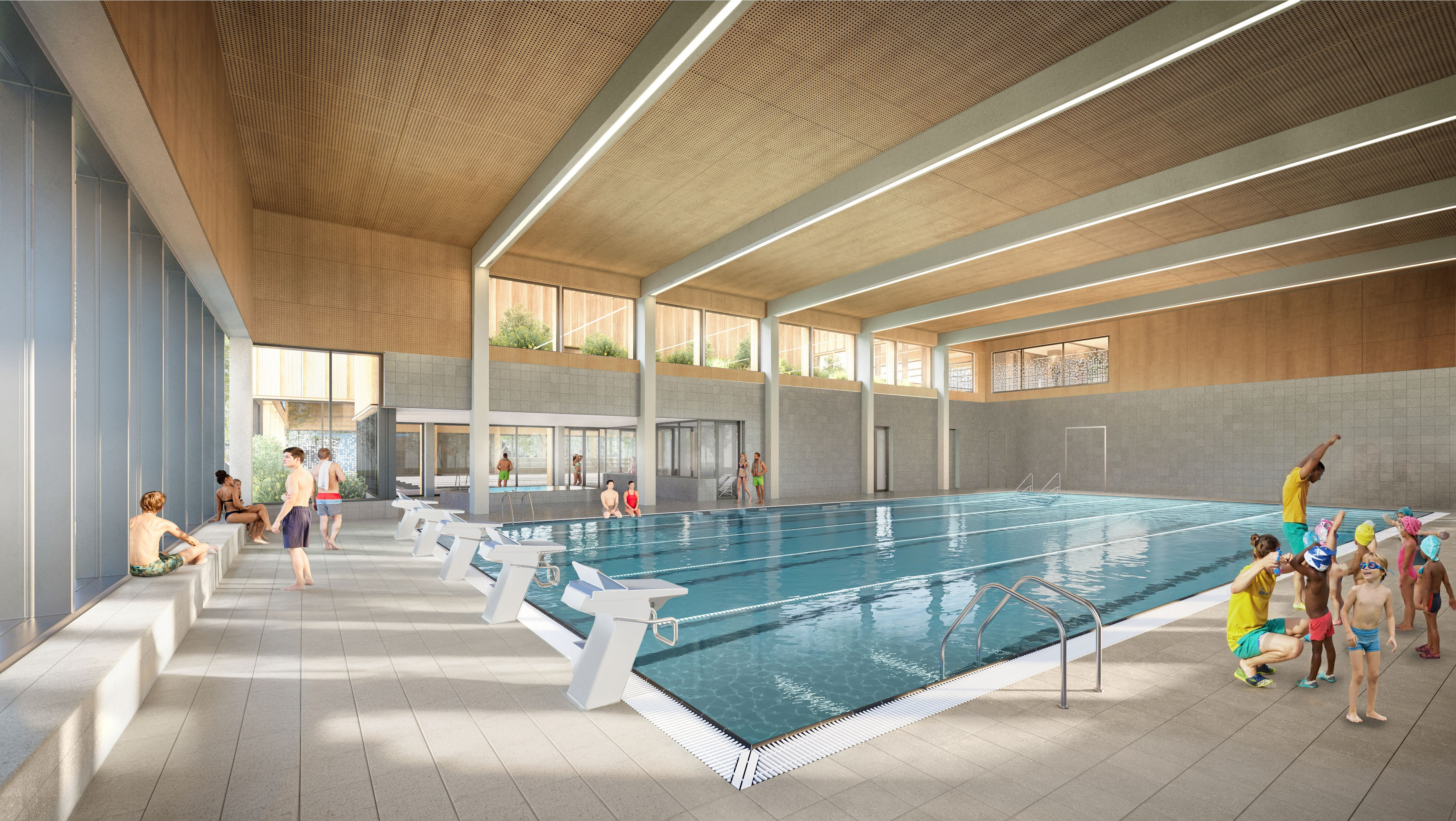 Die ersten Hochbautätigkeiten werden zu März 2026 avisiert. Die Fertigstellung des baulich und technisch komplexen Gebäudes mit ca. 15.500 Quadratmeter Bruttogeschossfläche und einem Bruttovolumina von ca. 87.000 Kubikmetern ist im Jahr 2028 geplant. Die ersten Bahnen sollen im ersten Halbjahr des Jahres 2028 geschwommen werden.