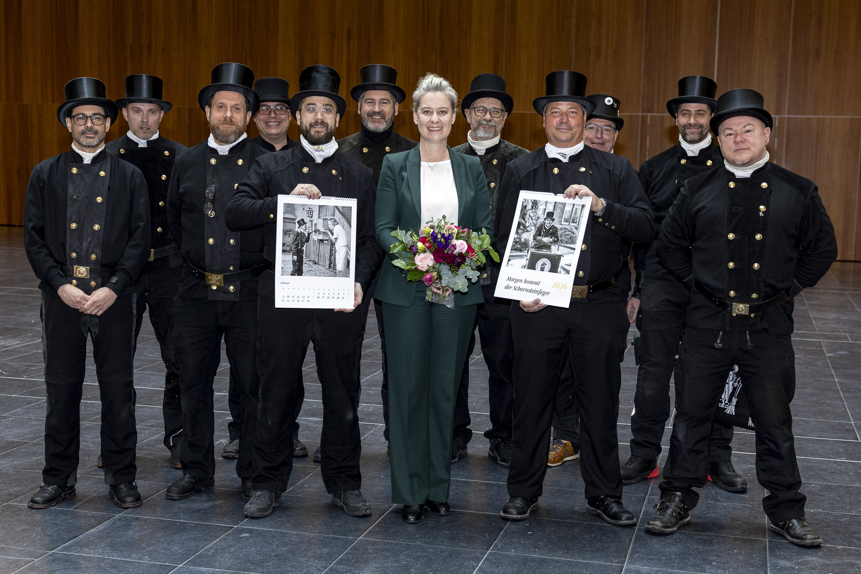 In besonders großer Runde kamen die Schornsteinfeger zusammen und nutzten den Besuch nicht nur für ihre Neujahrswünsche und die Übergabe von Glücksbringern, sondern auch für ein gemeinsames Foto für den Schornsteinfegerkalender 2027. Darüber hinaus stand ein persönliches Gespräch zum gegenseitigen Kennenlernen im Mittelpunkt, bei dem sich die neue Oberbürgermeisterin und die Vertreter der Innung austauschen konnten.