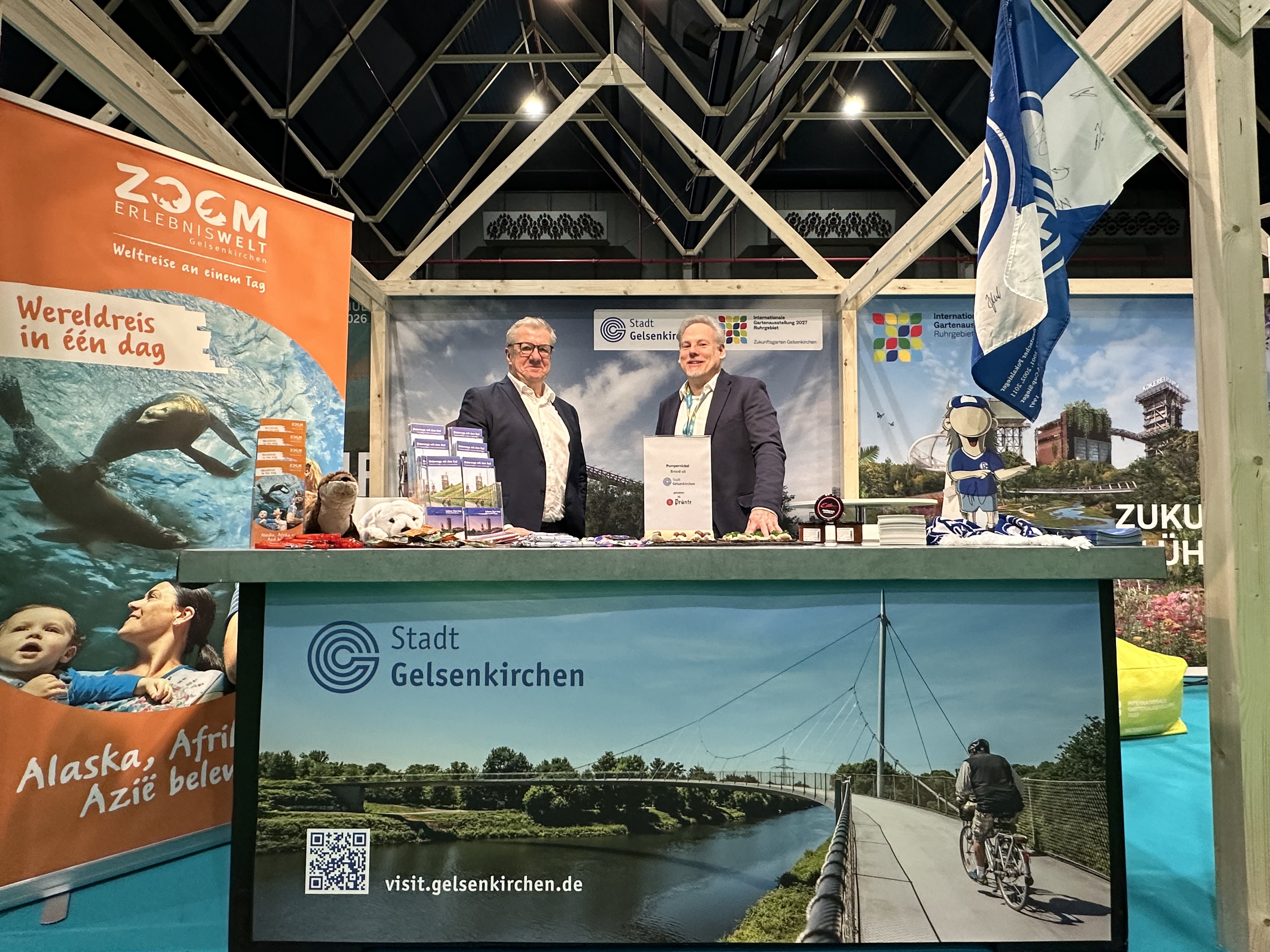„Der Auftritt in unserem Nachbarland ist ein Muss. Die Niederlande sind für das Ruhrgebiet und Gelsenkirchen der wichtigste Auslandsmarkt. Gelsenkirchen hat hier mit der ZOOM Erlebniswelt, Schalke 04 und dem Angebot für Radtouristen attraktive Ziele für Besucherinnen und Besucher aus den Niederlanden. Mit dem Nordsternpark haben wir zudem in diesem Jahr kräftig für die IGA 2027 geworben“, so Markus Schwardtmann, Leiter des Referates Öffentlichkeitsarbeit der Stadt.