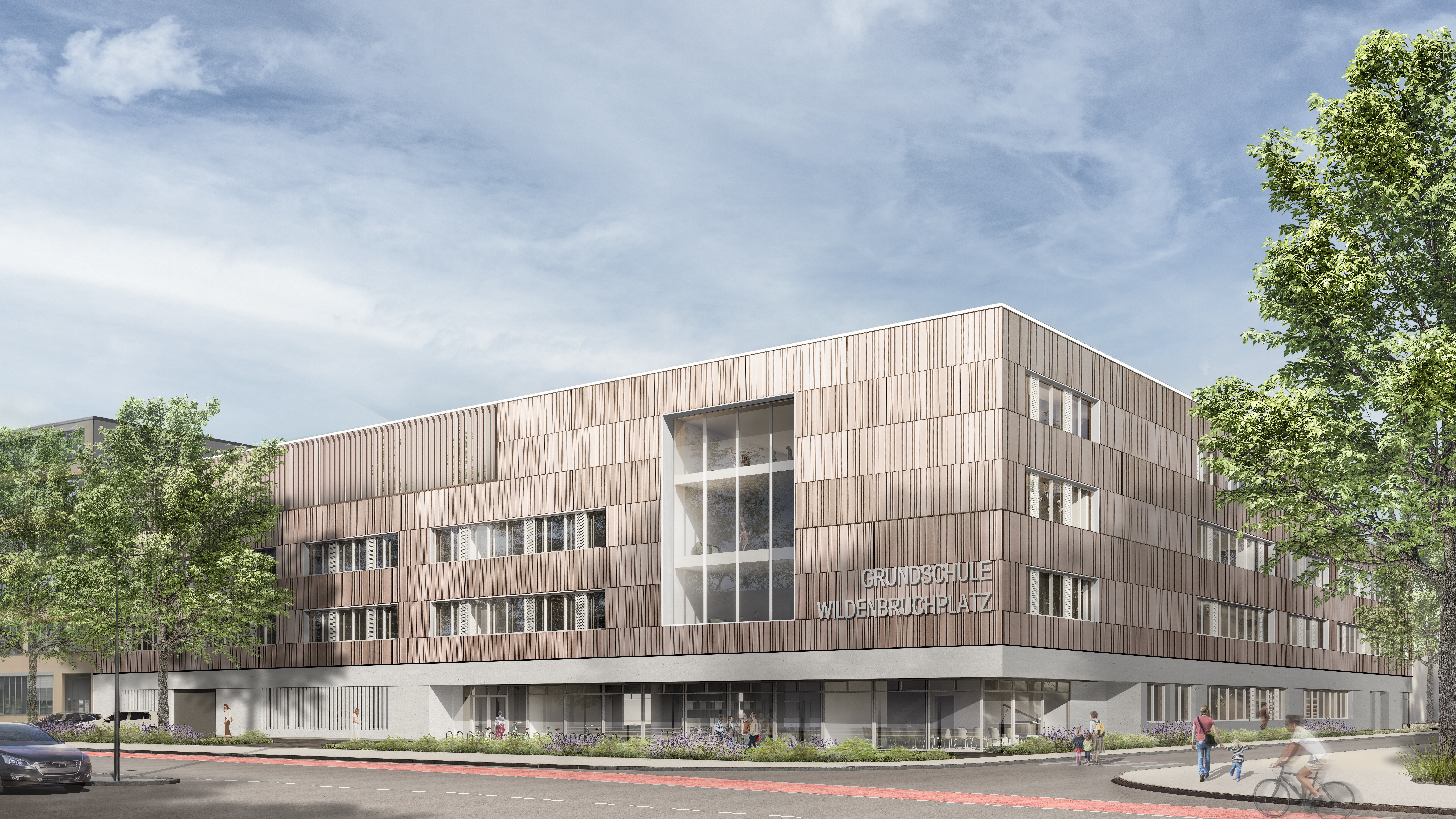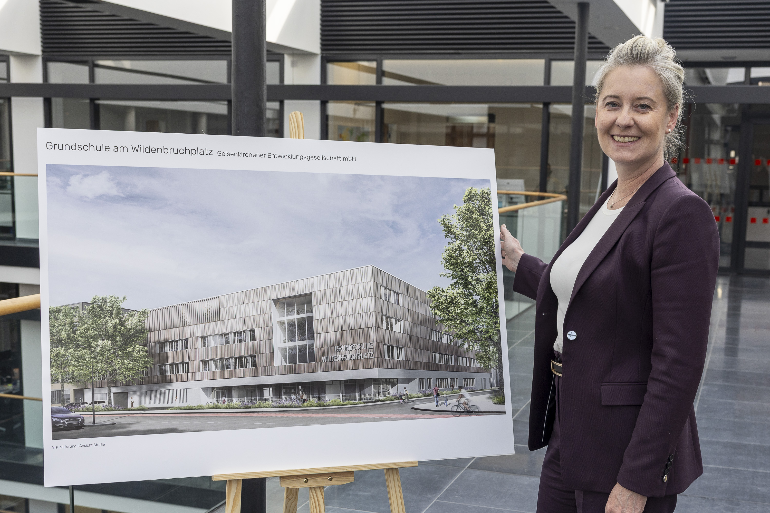 GE. Am Wildenbruchplatz beginnt die Planung für den Neubau einer fünfzügigen Grundschule mit Platz für rund 500 Schülerinnen und Schüler. Die Inbetriebnahme und Neugründung der Schule ist zum Schuljahresbeginn 2028/2029 vorgesehen. Mit dem neuen Schulstandort reagiert die Stadt auf den steigenden Bedarf an Schulplätzen in der Innenstadt und stärkt nachhaltig die Bildungsinfrastruktur. So betonte denn auch Oberbürgermeisterin Andrea Henze bei der Vorstellung der ersten Konzeptstudien: „Es geht Schlag auf Schlag. Wir sind mitten drin in der größten Schulbauoffensive der letzten 50 Jahre in Gelsenkirchen. Vier neue Grundschulen, drei weiterführende Schulen sowie der komplette Umbau unserer Schulen der beruflichen Bildung, dazu zahlreiche Anbauten – all das läuft bei uns gerade quasi parallel.“ Daher sei es entscheidend, bei dieser Herausforderung als Stadt leistungsstarke Partner an der Seite zu haben.