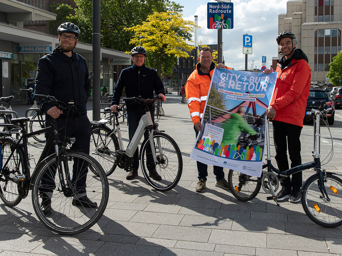 Zwei neue Nord-Süd-Rad-Routen durch Gelsenkirchen bringen Radfahrerinnen und Radfahrer jetzt sicher und komfortabel vom Stadtnorden in den Stadtsüden und retour. Es gibt eine West- und eine Ost-Route, beide sind mit eigens entwickelten Zeichen gut beschildert. Unter dem Motto „City -> Buer & Retour“ wirbt die Stadt auf Plakaten ab dieser Woche für die beiden neuen Routen.