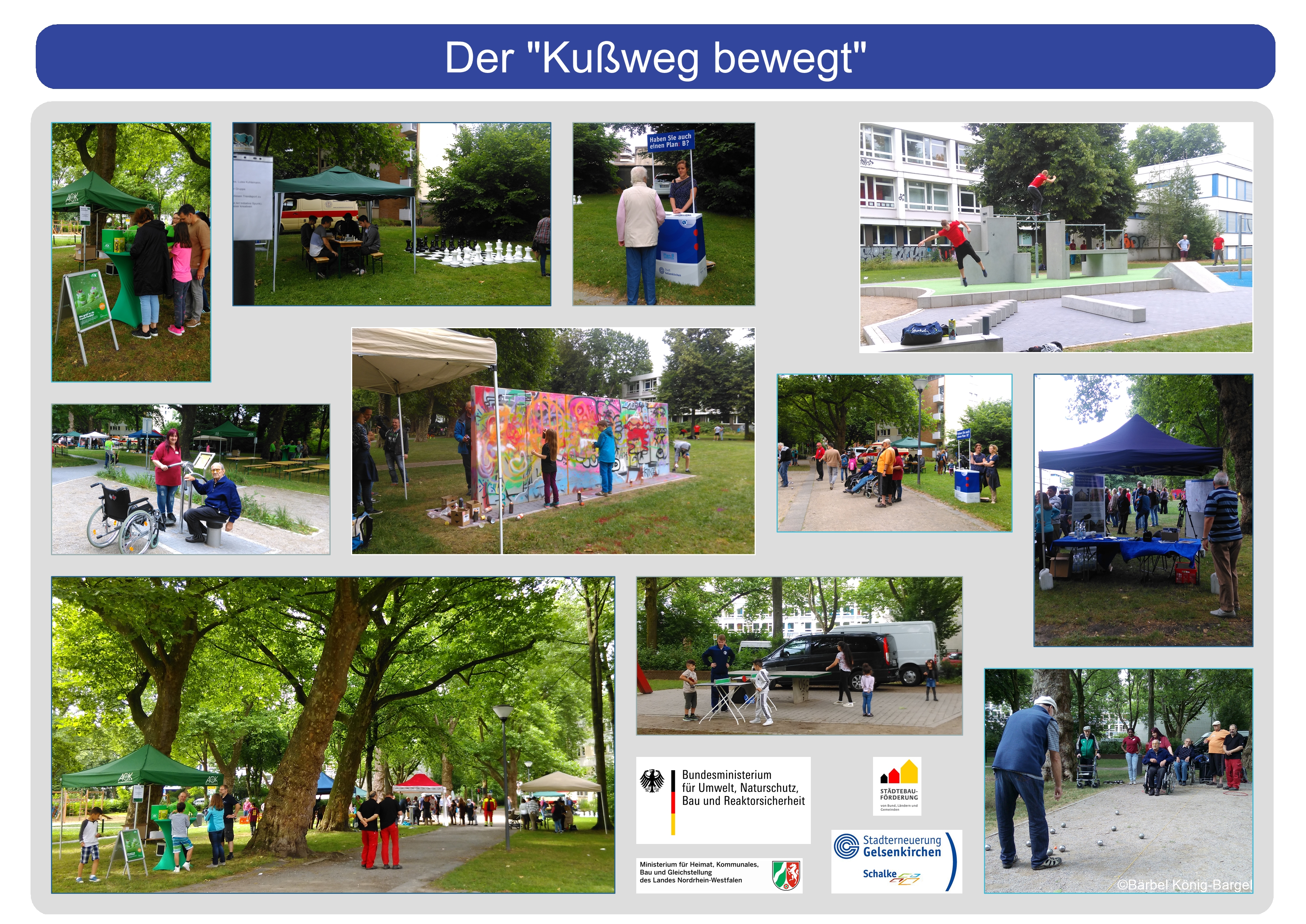 Die Wegeverbindung Kußweg ist eine der wenigen größeren Freiflächen in Schalke und die einzige grüne Rad- und Fußwegverbindung in Richtung Innenstadt. 2014 wurde sie gemeinsam mit dem Spielplatz in einem ersten Bauabschnitt aufgewertet: Ein neuer Eingangsbereich von der Grenzstraße aus ließ die Trampelpfade verschwinden, neue Sitzbänke, eine Boule-Fläche, die Verlegung der Tischtennisplatte und die Ergänzung um eine „Jugendsitzbank“ schufen neue Nutzungsmöglichkeiten. Dabei wurden die Anregungen der Bewohnerinnen und Bewohner, Kinder sowie der Akteure im Stadtteil berücksichtigt. Das Konzept erarbeitete das Landschaftsarchitekturbüro Hoff aus Essen.